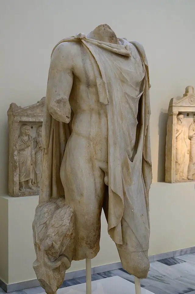 Men typically wore a shorter version of the chiton, often unbelted or fastened with a single pin at the shoulder. For public appearances or formal occasions, they added a himation, which was draped over one shoulder and left the dominant arm free. The chlamys, a shorter cloak pinned at the right shoulder, was favored by soldiers and messengers because it allowed freedom of movement and conveyed masculine readiness.